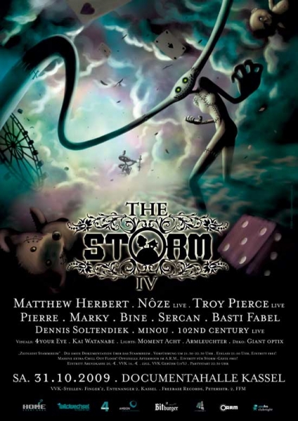 Auch dieses Jahr, wenn sich die Wärme des Sommers endgültig und unwiderruflich verabschiedet hat, lassen wir vom Stammheim Institut für extremes Partygewitter wieder rohe Naturgewalten über Dich hereinbrechen. Zum mittlerweile vierten Mal zieht am 31.10. unser Sturm auf und bläst ein paar der großartigsten Künstler der elektronischen Musikwelt in die Documentahalle unserer verschlafenen Power-Metropole Kassel. MATTHEW HERBERT himself (!!!) wird mit einem raren DJ-Set den Dancefloor durcheinanderwirbeln. TROY PIERCE und die spaßigen Franzosen von NÔZE fönen live alle Frisuren in die Waagerechte. PIERRE, MARKY und BINE blasen zusammen mit ihren HOMiEs SERCAN und DENNIS SOLTENDIEK die frischesten Beats durch die Sturmboxen. Und auch bei BASTI FABEL, MINOU und 102nd CENTURY live fliegt Dir korrekt der Hut hoch! Der Blitz schlägt ein Dank MOMENT ACHT und dem ARMLEUCHTER und der Bildersturm kommt auch dieses Jahr wieder aus den Windhosen von unseren Wiener Freunden von 4YOUREYE und unserem HOMEie KAI WATANABE. Und für den kleinen Windschatten zwischendurch ist mit unserem massiven Chill-Out-Floor auch gesorgt.