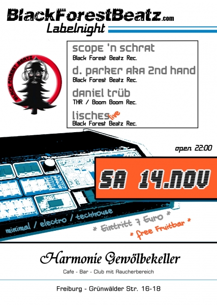 Nach dem bombastischen Start am 26.09.09 geht es am 14.11.09 in die zweite Runde. Diesmal begleitet euch ein richtig fettes Rahmenprogramm. Denn nicht nur die Künstler von Black Forest Beatz Rec. sind am Start, sondern auch unser special DJ UND THR LABELBOSS DANIEL TRÜB (Schallrauch), der es sich nicht nehmen lässt aus dem weiten Italien hier her zu euch anzureisen und uns mit seinen fetten Sounds zu beschallen.