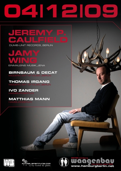 Zum möglichen letzten Akt in unserem Wohnzimmer haben wir nochmals unseren alten Bekannten und Freund Jeremy P. Caulfield eingeladen! Nachdem Ivo Zander den Abend beginnt, läutet Jeremy dann die Nacht endgültig ein. Und das in gewohnter Manier: Kein langes Abtasten, kein Vorfühlen und bestimmt keine Experimente! Roh, kantig, ohne viel TamTam geht?s zügig geradeaus und manchmal auch gehörig um die Ecke!! Treibend, exzessiv aber trotzdem familiär treibt er regelmäßig die Menschen durch die Nächte, wie bei seinen wohl schon legendären Dumb-Unit vs. Vakant Nächten im Berliner Watergate!