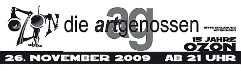 15 Jahre Ozon - natürlich möchten wir jetzt nicht viel verraten aber wie jedes Jahr möchte das Ozon eins drauf setzen. Das Fünfzehnjährige wird am Donnerstag den 26.11.09 mit einer bekannten Pforzheimer Band die Artgenossen ab 21h starten, der Freitag und Samstag wird eine Überraschung bleiben. Diejenigen, welche mitfeiern möchten, können ihre Einladung ab sofort im Ozon abholen ohne Einladung wird kein Eintritt möglich sein.