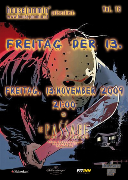 Nach einem erfolgreichen Start in den Herbst, geht die Housejammin?-Serie weiter: das diesmalige Motto lautet Freitag, der 13te! Im Le Passage wird wieder mit feinen Tunes und heißen Beats eingeheizt! Und auch die Location wird entsprechend schaurig dekoriert und zum Gruseln einladen!