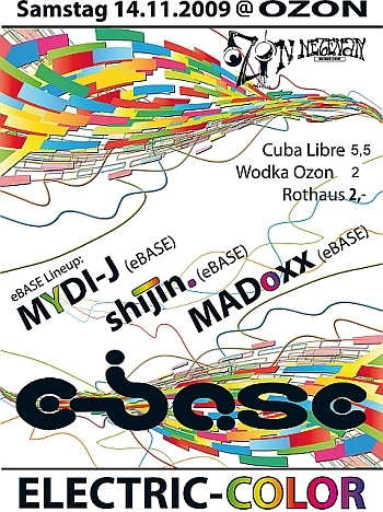 es ist soweit! Die zehnte eBASE Party steht vor der Tür. Das Line up wird sich wieder aus unseren 3 Stamm-DJ´s shijin, MYDI-J und MADoxx zusammensetzen. Unser VJ Fonkmonk ist für die visuellen Reize zuständig. Cuba Libre 5,50 ? Zäpfle, Wodka Ozon 2 ?