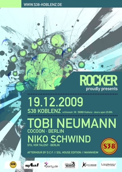 Zu unserem vorweihnachtlichen highlight im S38 freuen wir uns, einen der ganz Großen der deutschen und europaweiten House- und Techno-Szene begrüßen zu dürfen: Tobi Neumann! Gemeinsam mit Niko Schwind wird er am letzten Samstag vor Weihnachten ordentliches ?Rocker?-Feeling in Koblenz schönsten Kellerclub bringen, bevor bei der Afterhour mit DFC die Sonne aufgeht!