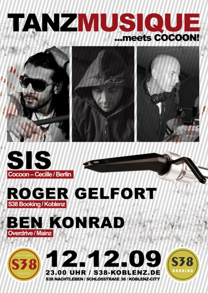 Mit SIS, Roger Gelfort, Chris Hearing und Ben Konrad heißt es am 12. Dezember ?Vier gewinnt? im S38. Heftig wird?s bei der Dezember-Ausgabe der ?Tanzmusique?-Reihe?, bei der vor allem Cocoon-DJ SIS in vorderster Reihe steht. Los geht?s um 23.00 Uhr!
