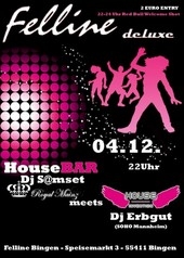 Zum ersten Mal veranstalten die Jungs von Orgency mit ihrem ?Zugpferd? Dj S@mset die ?HouseBAR? im Binger Felline. Zum Auftakt einer neuen und abwechslungsreichen Eventreihe, mit ständig wechselnden Gast-Djs, Getränkespecials und Mottos, hat sich Orgency einen Leckerbissen der House-Szene ins Felline eingeladen.