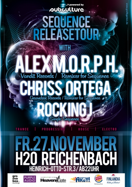 Am Freitag, den 27.11.09 haben wir ein ganz besonderes Highlight zu präsentieren. ?Sequence? die Hitsingle von DJ Rocking J auf Groovebox Rec. geht auf World-Tour. Der Track stoßt international auf bestes Feedback ? der Remix von ALEX M.O.R.P.H. steht in sämtlichen TOP10 Playlists von namenhaften DJs wie Armin van Buuren, Paul van Dyk, Ferry Corsten oder Chris Montana. Aktuell enterte ?Sequence? die DDC (deutschen Dance Charts) und ist auf dem aufsteigenden Ast.