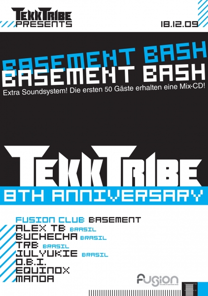 Es begann alles am 15.12.2001 mit einer kleinen Veranstaltung in der Kerkstiege 31 in Greven. Was zunächst als lokale Partyreihe mit DJs aus der näheren Umgebung begann entwickelte sich im Laufe der Zeit zu immer größeren Events mit namhaften DJs und Liveacts der Hardtechnoszene aus dem In- und Ausland bis hin zur eigenen Stage auf der Ruhr in Love 2009. Neben den zahlreichen Events erschien 2003 das erste Release auf TekkTribe Records, die "Gehörsturz EP", welche sich in einem der größten Online-Vinylshops 6 Wochen auf Platz 1 hielt. Mittlerweile sind 8 Jahre vergangen und wir danken allen Leuten für die vielen geilen Momente auf den Partys, sowie den massiven Support, den ihr uns von Anfang an gegeben habt. Anlässlich des 8-jährigen Jubiläums haben wir euch ein erstklassiges Line-Up zusammengestellt. Alex TB und Buchecha bringen mit einem Mega Battle auf 4 Decks den Keller des Fusion Club zum Kochen. Zudem präsentiert euch O.B.I. seine komplett neue Live-Performance. Als weiteres Highlight warten TRB, der Gründer von Technopride und Julyukie auf euch. Beide touren momentan durch Europa. Unterstützt werden sie von unseren Residents Equinox und Manoa, die dafür sorgen, dass die Party richtig in Schwung kommt. Werde Teil einer unvergesslichen Nacht! Die ersten 50 Gäste erhalten eine Mix-CD!