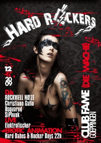 Es ist soweit! Eine neue Ära wird geboren! ?Hard Rockers? zwei begriffe voller Energie & Eskalation! Doch was steckt dahinter? Hard Rockers beschreibt das ultimative Electro & Minimal ? event verbunden mit fetten Rock-Vocals / Erotic & live Performence! Angeführt von den zwei Jungs der Combo Rockwell Noize die jede Tanzfläche mit ihrem Beat in Brand setzten! Ihre Elektro&minimal-lastigen Sets Rocken jede Tanzfläche! Durch verschiedene Gigs in der Schweiz wie auch in Deutschland geben sie heute richtig Gas!?..Das Worm up bestreitet Dsquared, der sich als Newcomer outen darf! Mit seinen Techhouse/Minimal sets heizt er die Menge richtig auf! Des Weiteren wird Heute Abend kein geringerer als Christiano Gallo euch mit seinen berüchtigten Electro/Tec-House Sets verwöhnen! Ihr denkt das war alles? Nein, natürlich nicht! Des Weiteren begrüßen wir SiPhunk in unseren Reihen der Electro wie auch Techno förmlich lebt! Als Live Performance Künstler heute Abend Elektrofischer die Ehre der schon zahlreiche Gigs zu verbuchen hat! mit seinen Bongos Rockt er die Beats! Als weitere Extras heizen euch die Hard Babes und die Rocker Boys mit ihrer Erotic Animation richtig auf! Für den richtigen ?Laserbeat? werden euch die Laser-Artists der Laser-Manufaktur in ihren bann ziehen! Das heutige Motto lautet freakadelica! also ihr F***ing Freaks lasst uns die Nacht zum Tage machen und bis zur absoluten Eskalation&Extase Rocken! Wir sind bereit! seit ihr es auch?